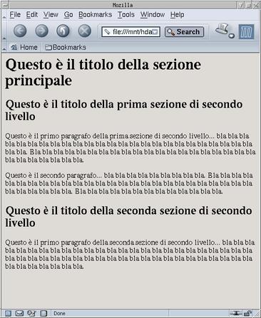 e si scriva un frammento di documento HTML che produca una resa grafica simile, utilizzando titoli per sezioni di primo e di secondo livello.