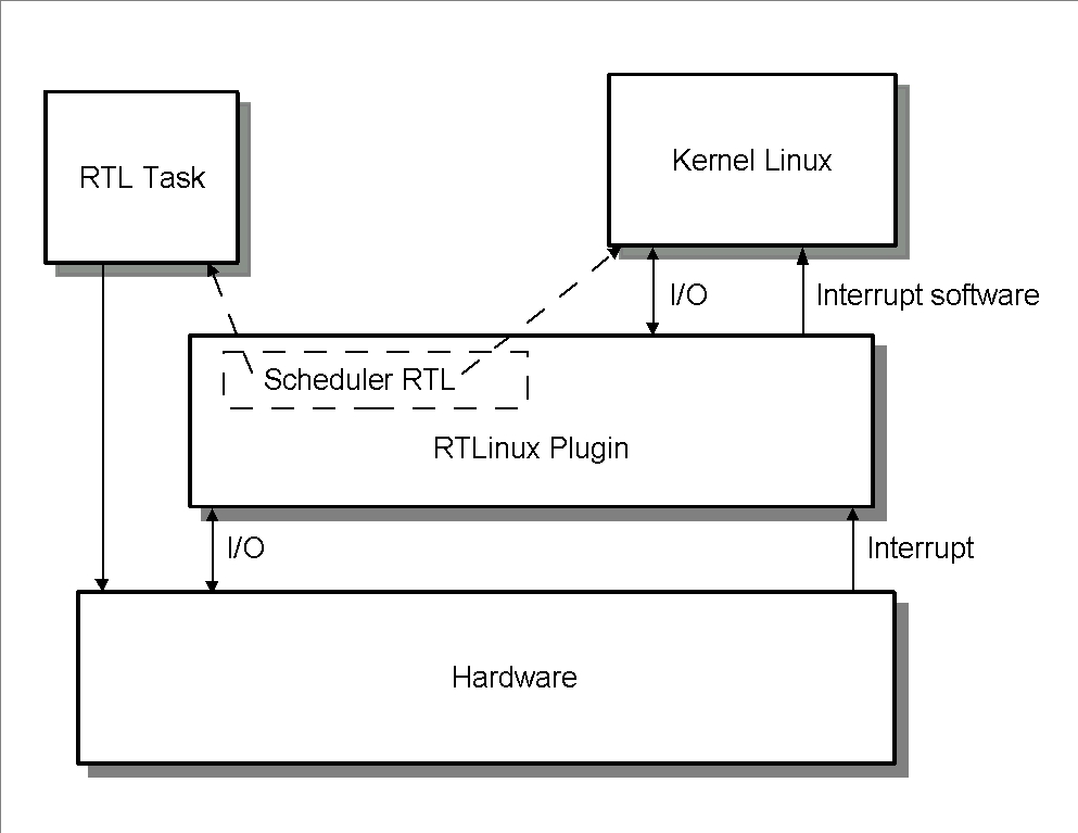 RTLinux intercetta tutti gli interrupt hardware e maschera quelli diretti al "kernel Linux" che diventano interrupt software (a bassa priorità).